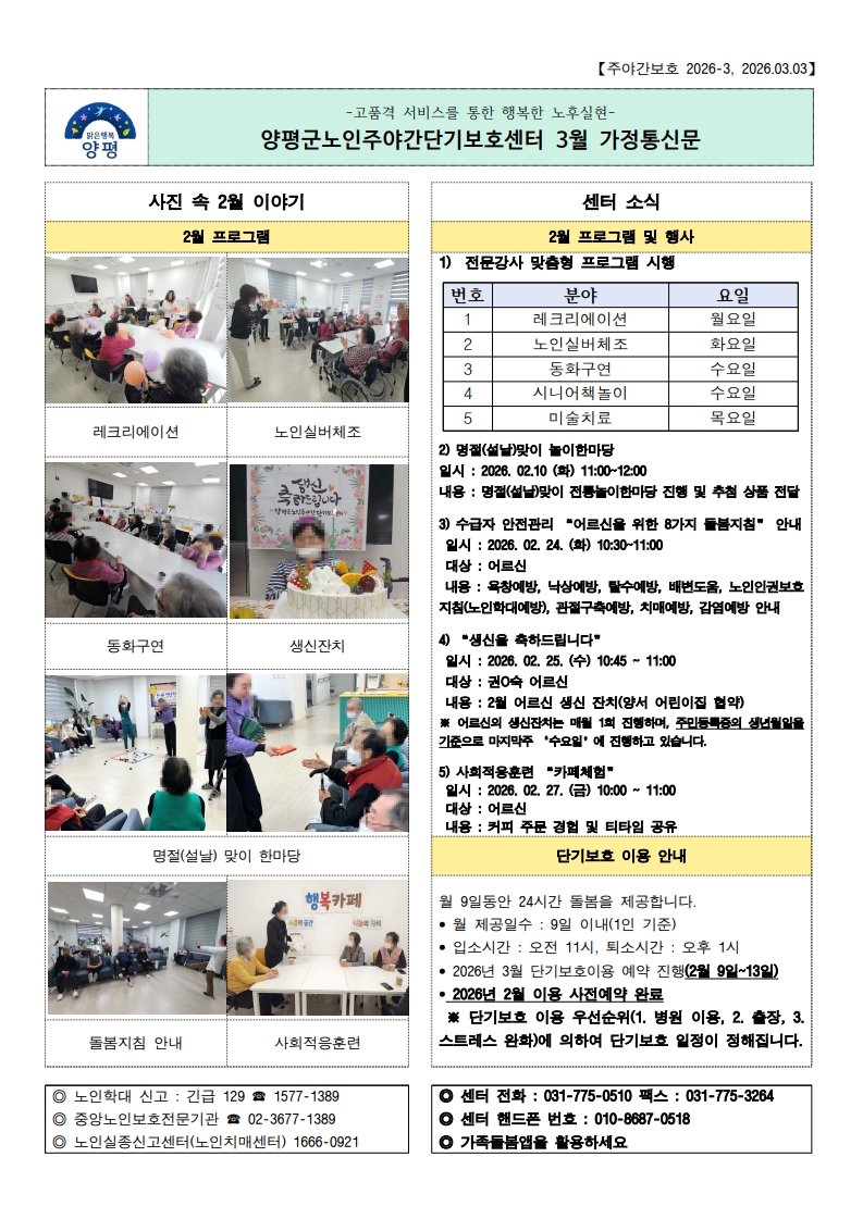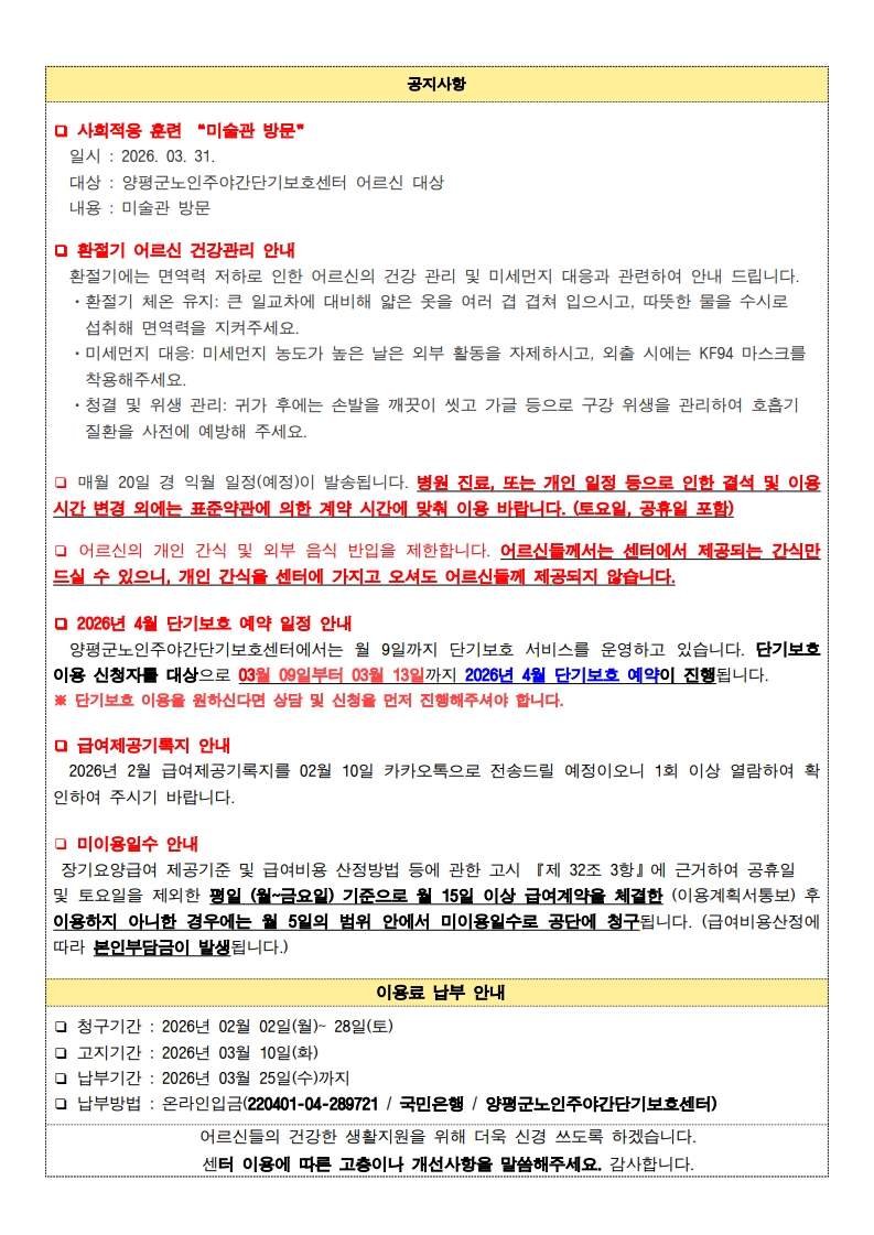 2026년 3월 가정통신문 공지